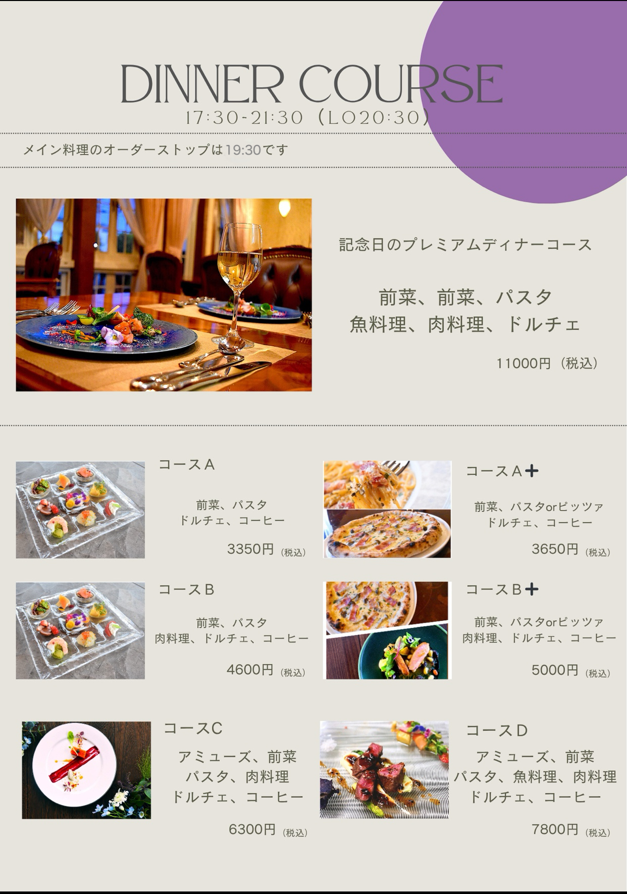 ディナーメニュー